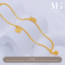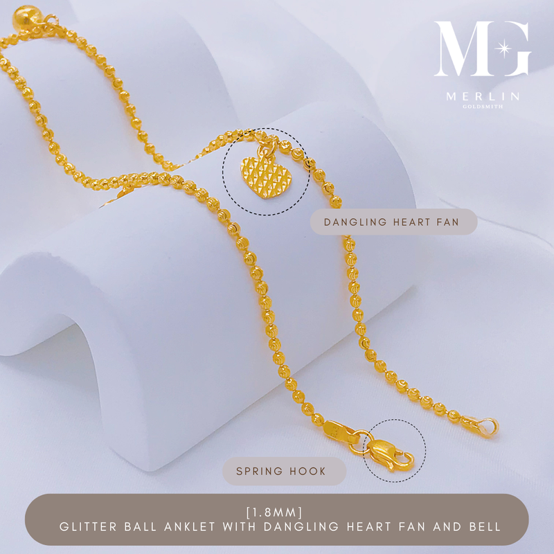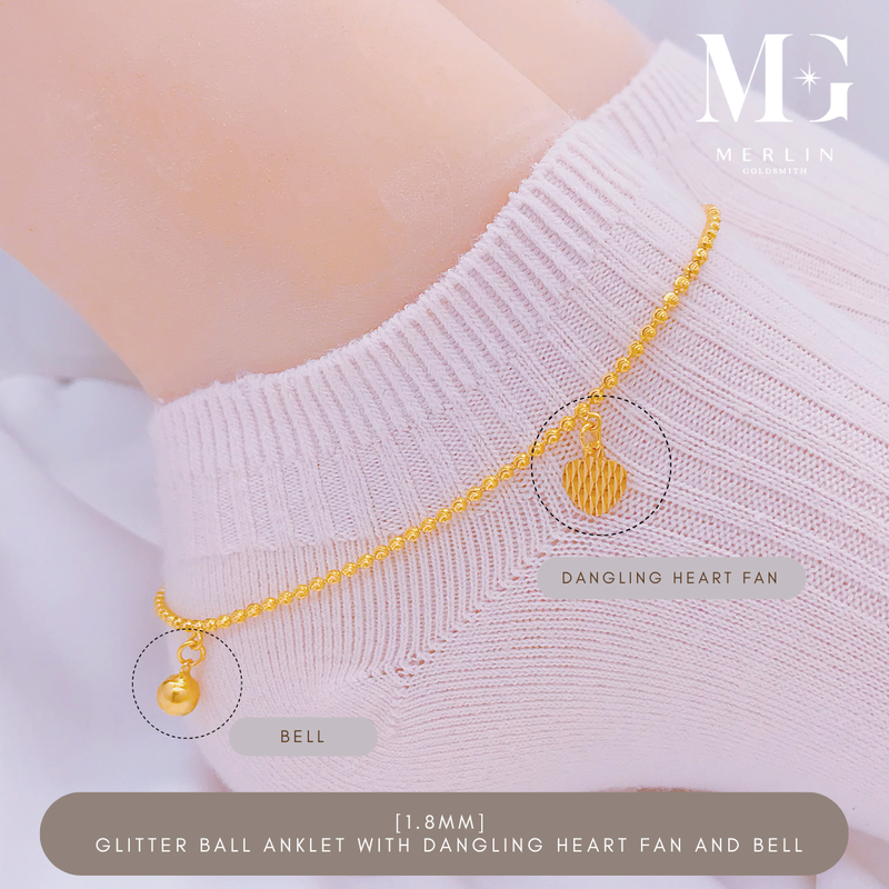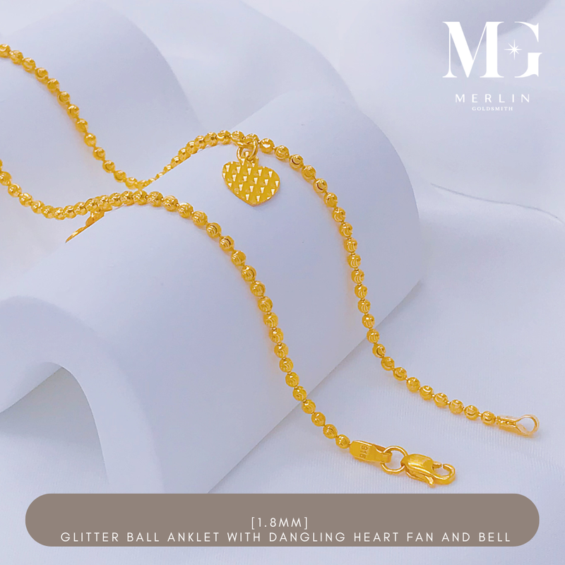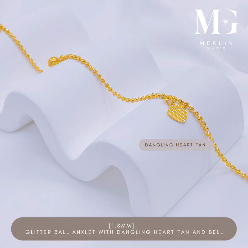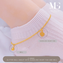 Step out in style with this Glitter Ball Anklet, crafted from shimmering 916 Gold. Featuring a charming dangling heart fan and a soft-chiming bell, this 22K gold foot chain adds a playful yet luxurious sparkle to every step you take.