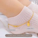 This 916 gold wheat chain anklet features a delicate interwoven design that gleams with subtle texture. Lightweight and comfortable, it’s a refined everyday essential that adds a graceful touch to any outfit.