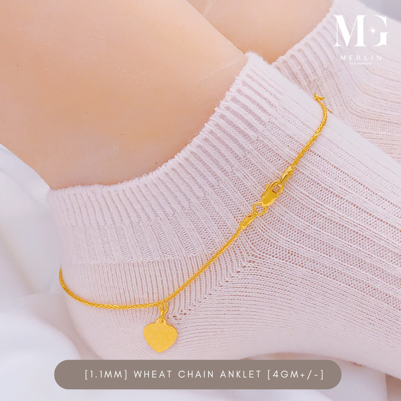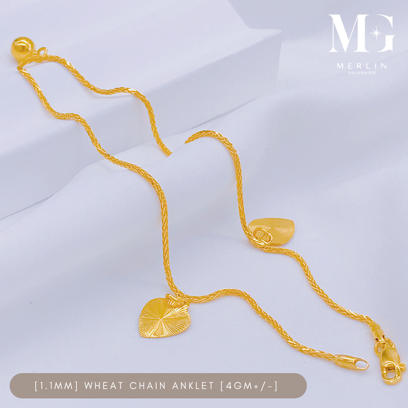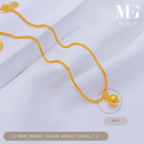 916 Gold (1.1mm) Wheat Chain Anklet (4GM+/-)