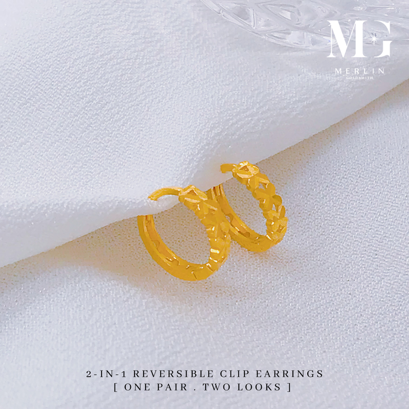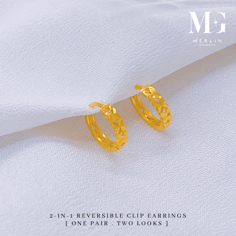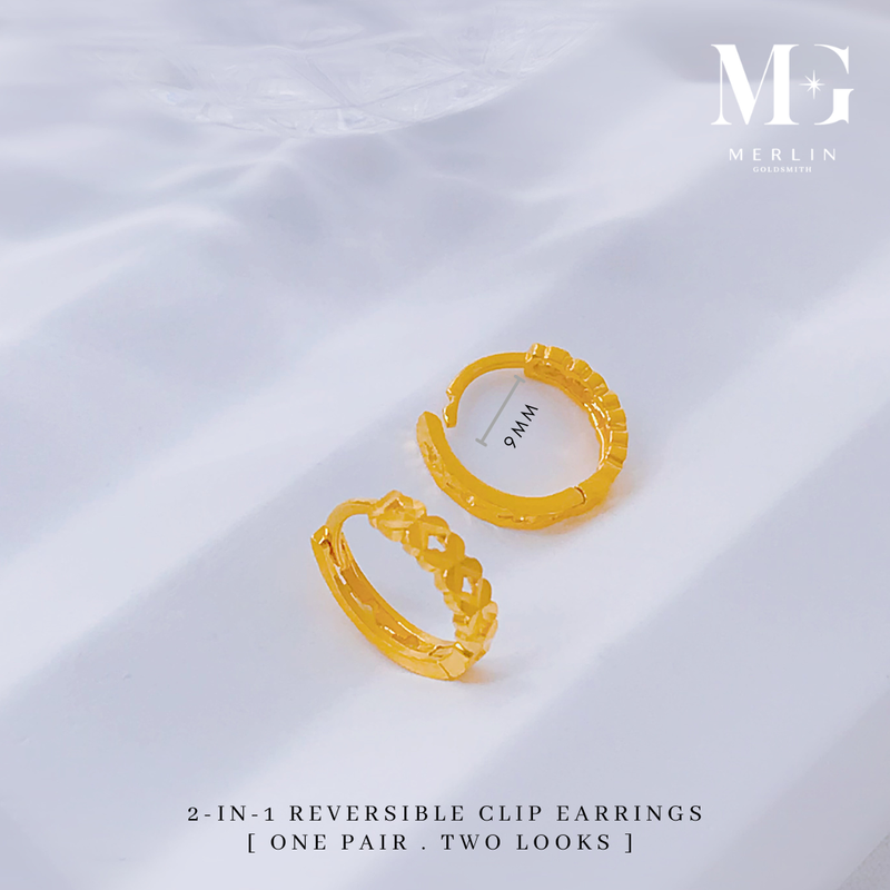 916 Gold 2-in-1 Reversible Clip Earrings