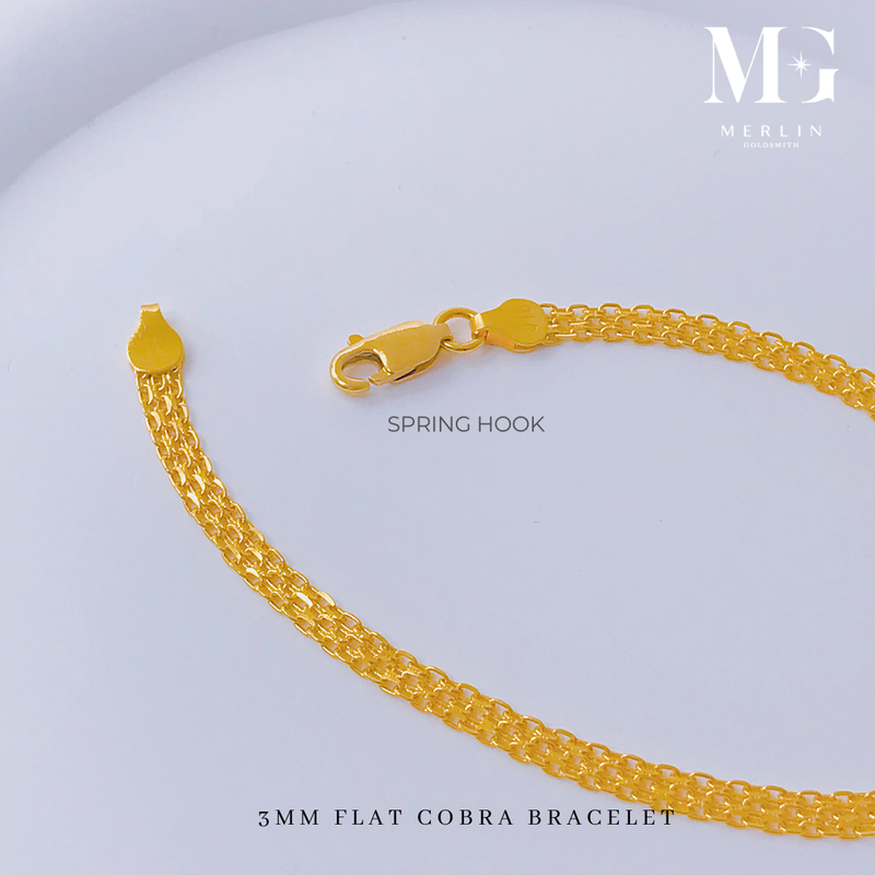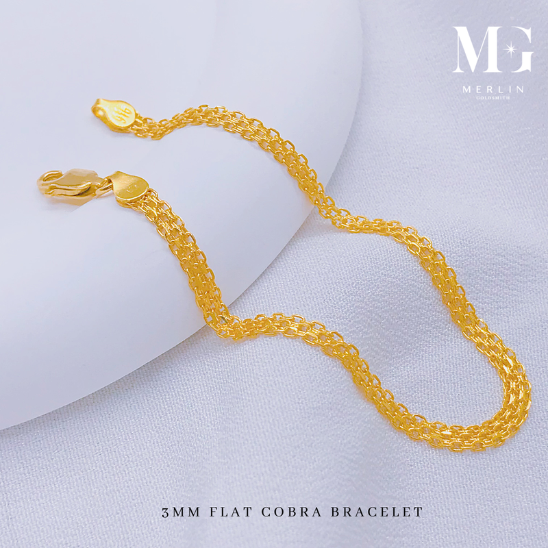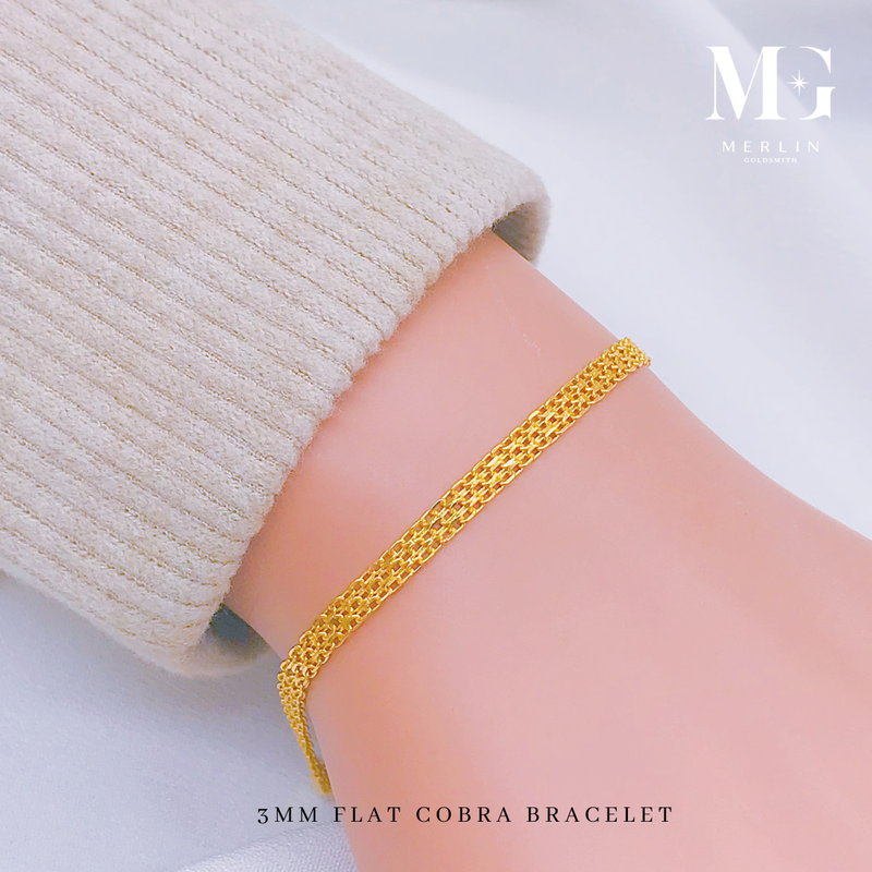 916 Gold 3mm Flat Cobra Bracelet