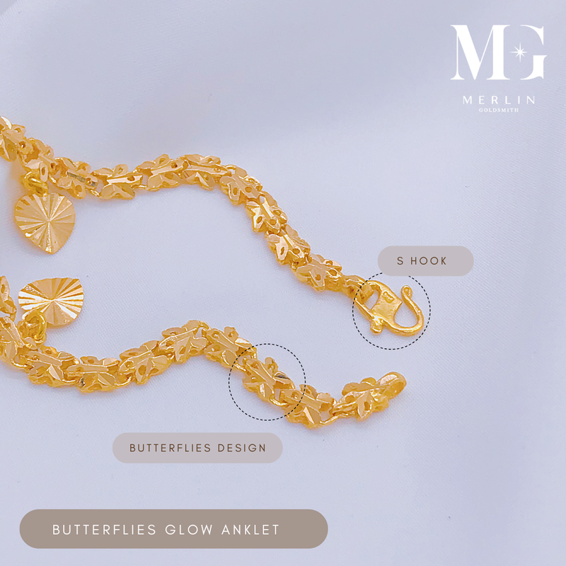 Adorned with butterfly and intricate gold details, this 916 gold anklet captures a playful yet graceful charm that glows with movement.