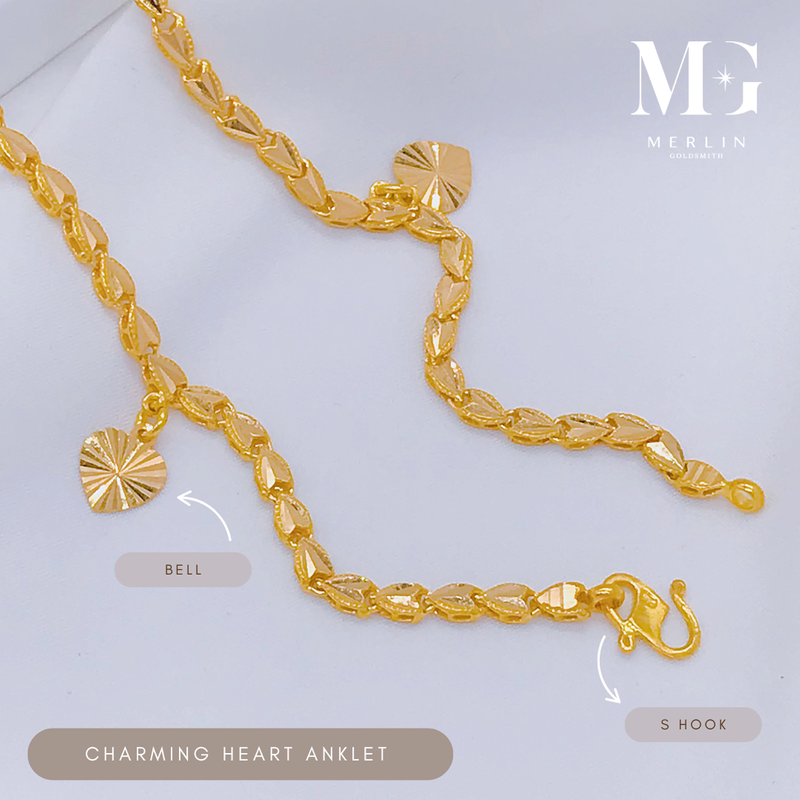 This 916 gold anklet features lovely hearts that adds sweet and feminine touch. A delicate design that pairs effortlessly with any outfit.