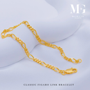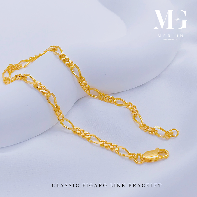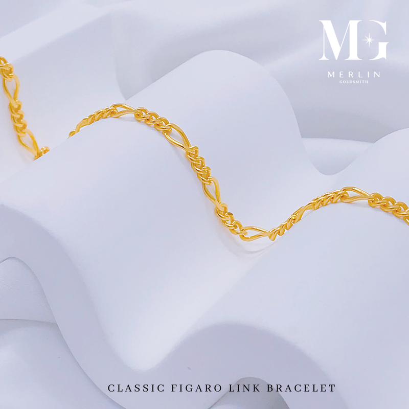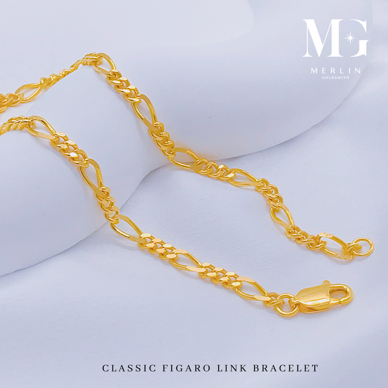 Opt for enduring style with the Classic Figaro Link Bracelet, a unisex favourite in 916 Gold. The alternating link pattern offers a sophisticated, polished look, making this 22K gold chain bracelet a versatile staple for any jewellery collection.