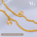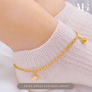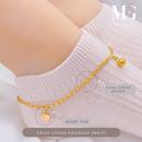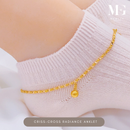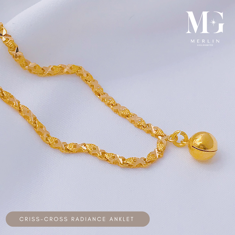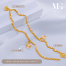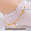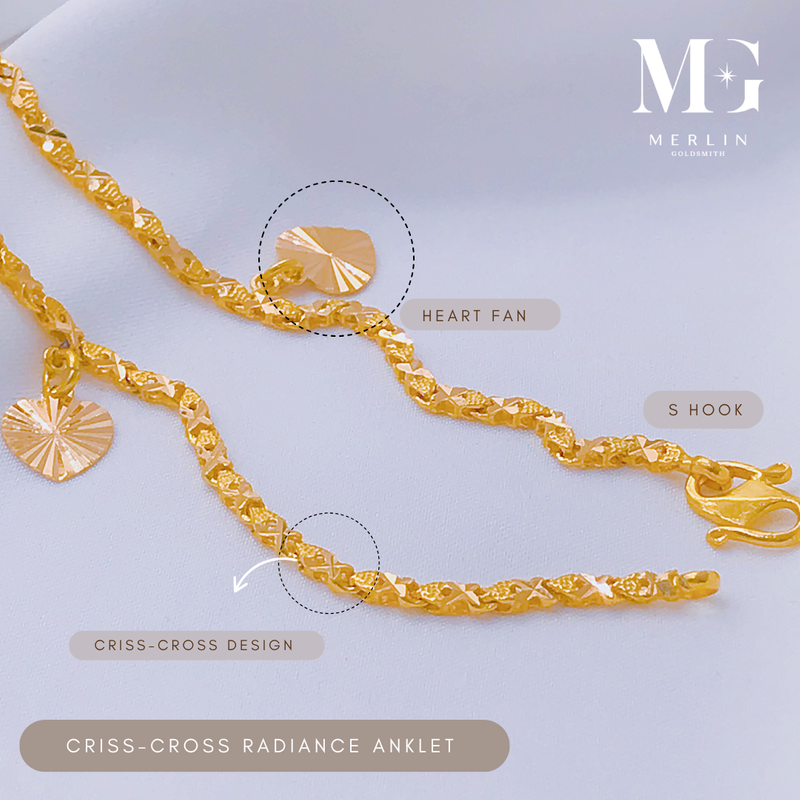 This 916 gold anklet features a unique criss-cross link pattern and a heart charm, adding texture and brilliance to your ankle in a modern way.