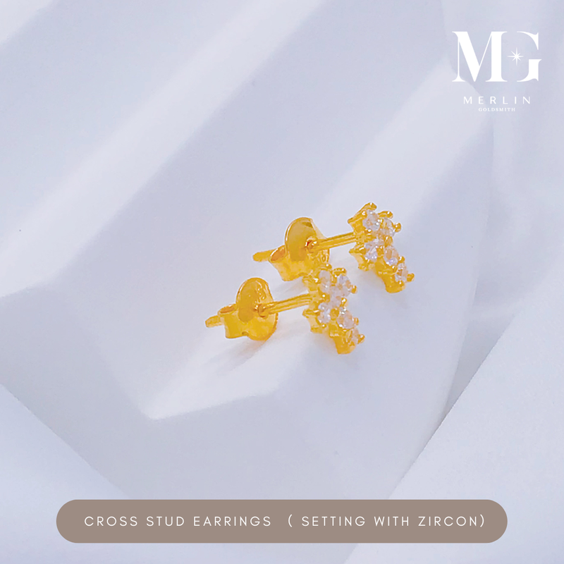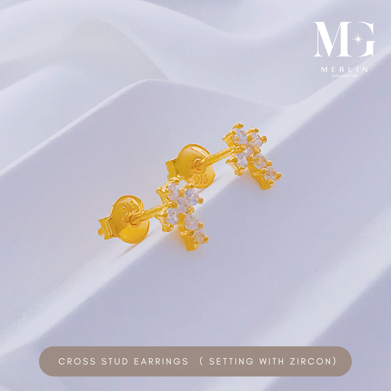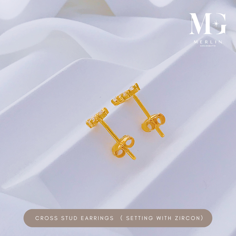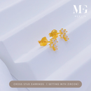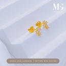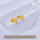 916 Gold Cross Stud Earrings Setting With Zircon