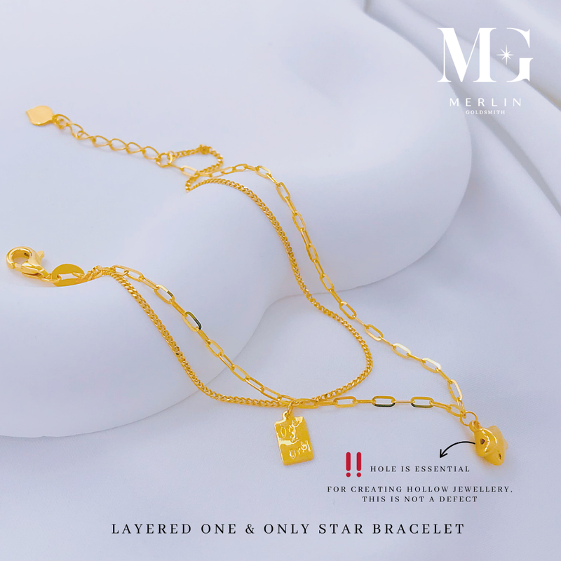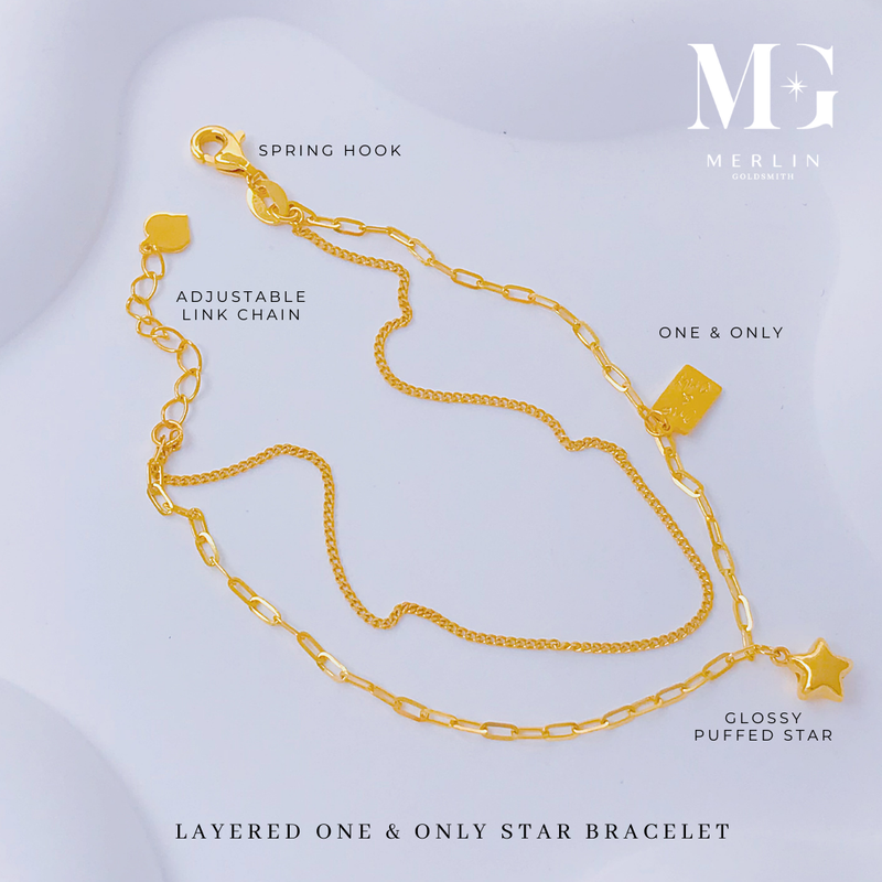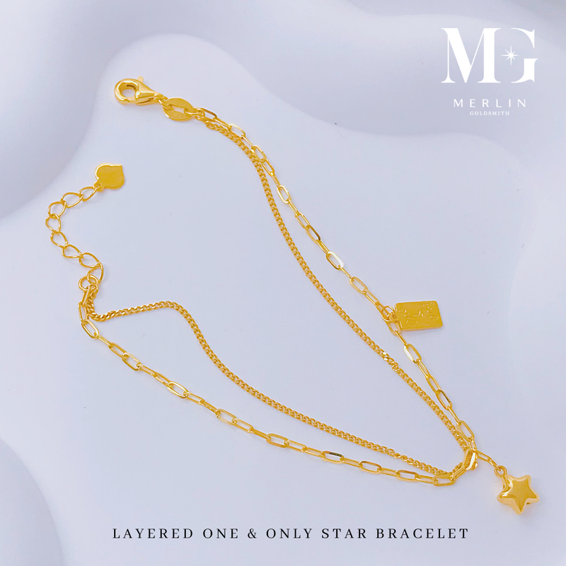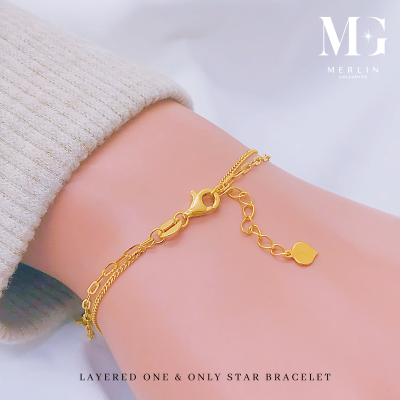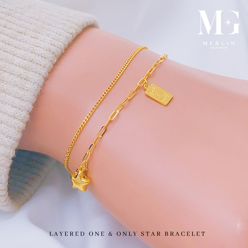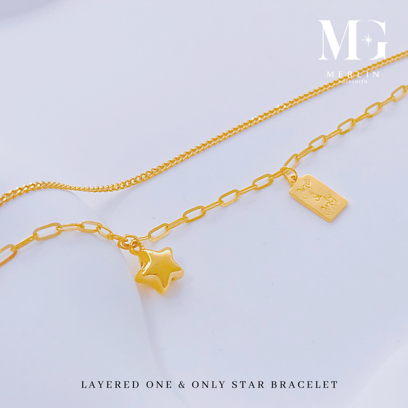 Achieve a perfect layered look instantly with this dual 916 gold chain design. It's completed with a sweet, hanging star charm for a touch of sparkle.