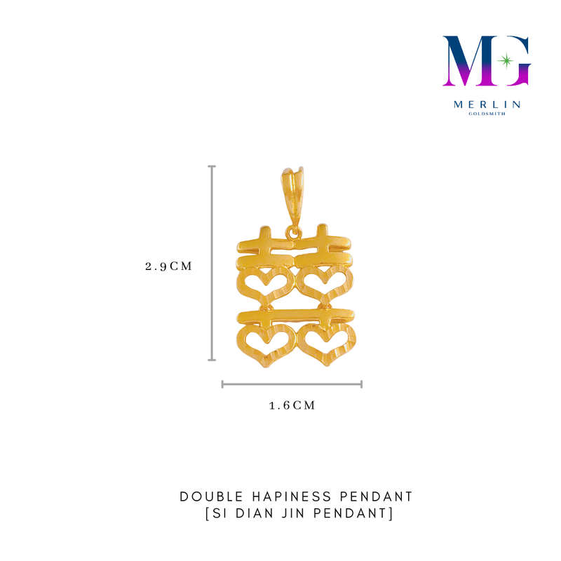 916 Gold Double Happiness Pendant (Si Dian Jin)