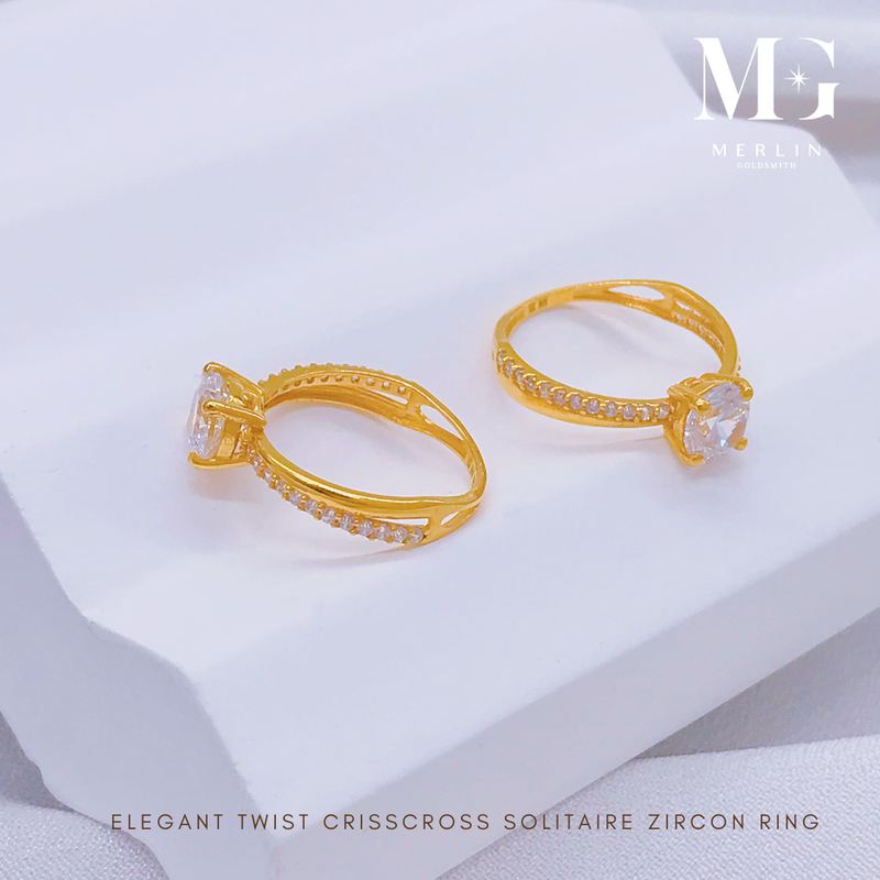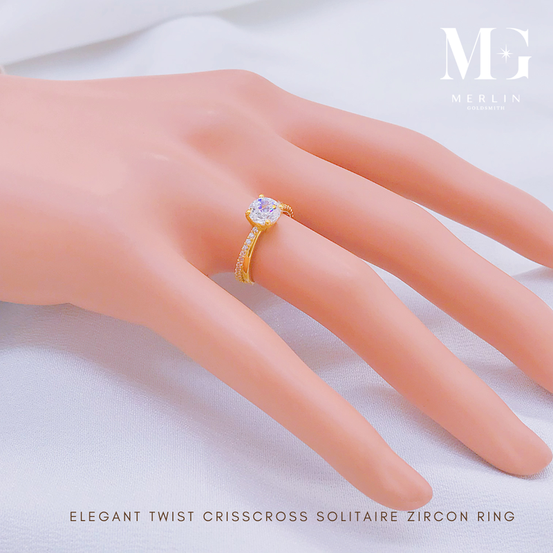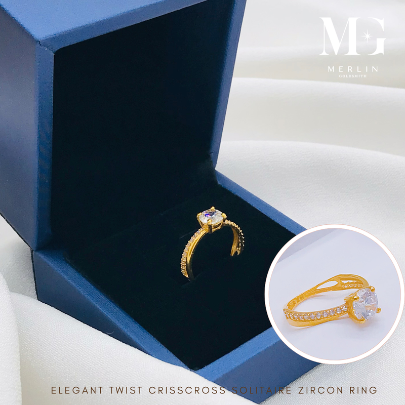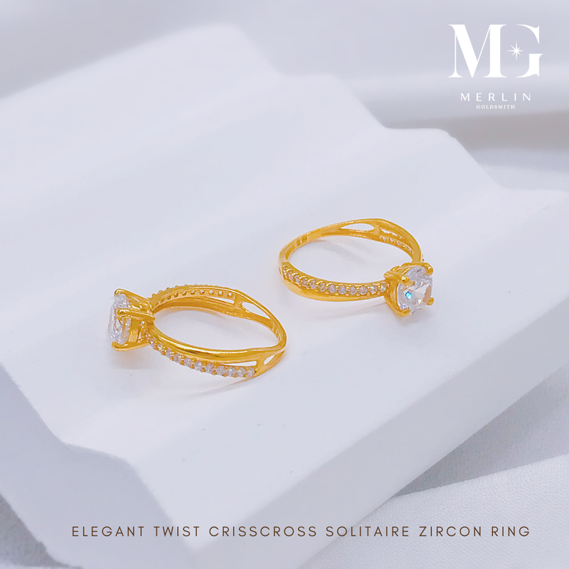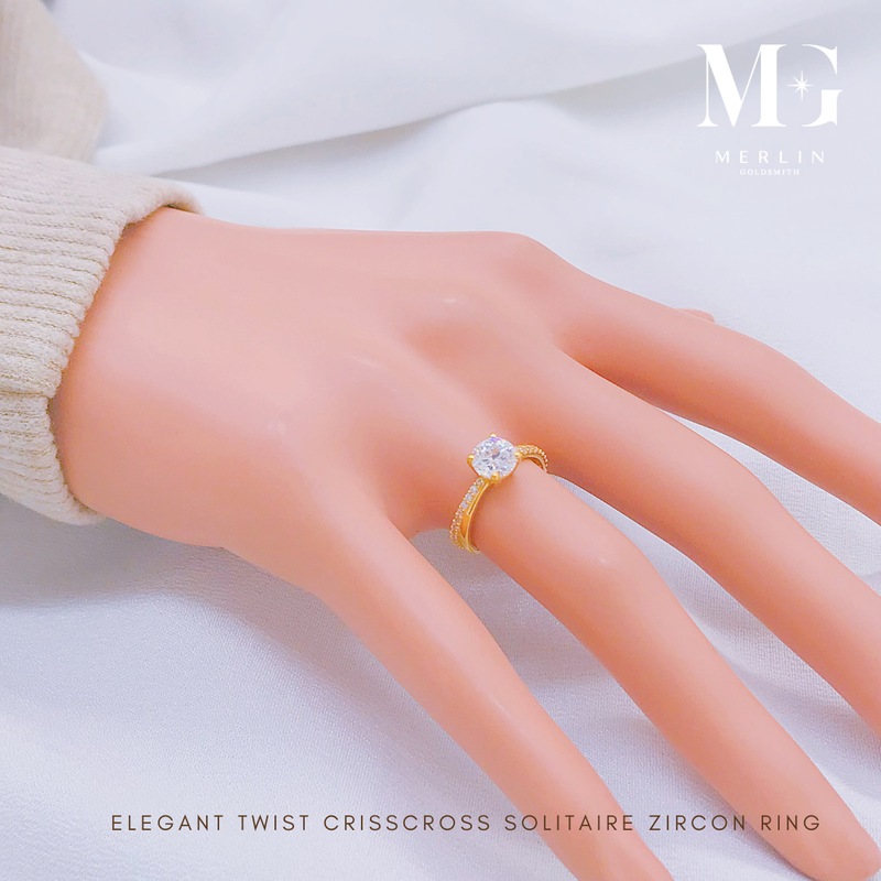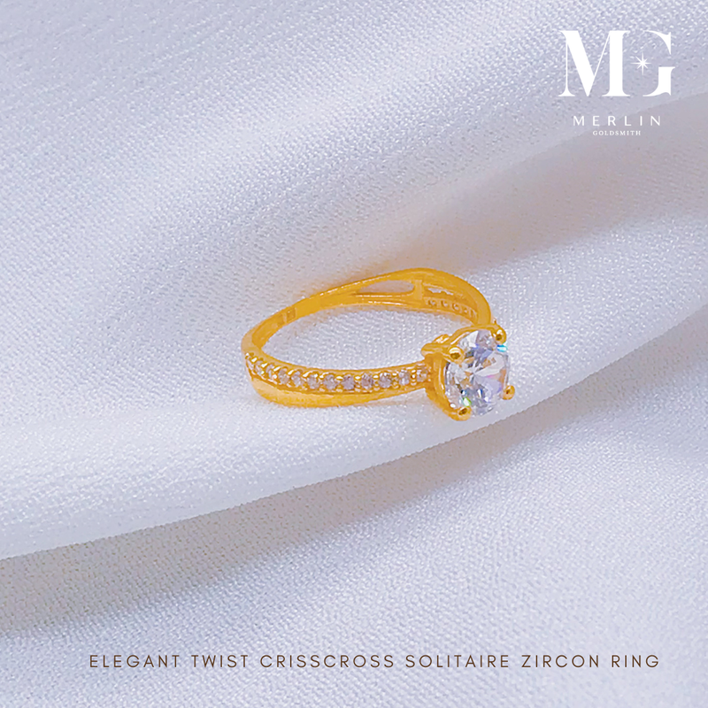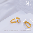 916 Gold Elegant Twist Criss Cross Solitaire Zircon Ring
