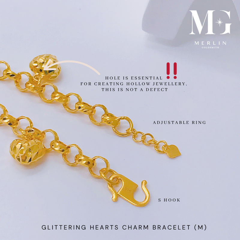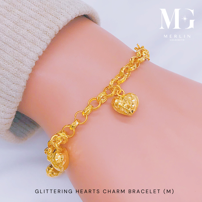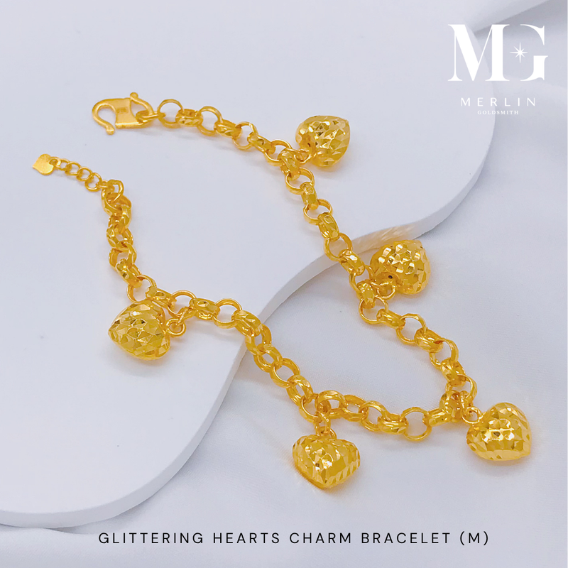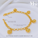 916 Gold Glittering Hearts Charm Bracelet (Medium)