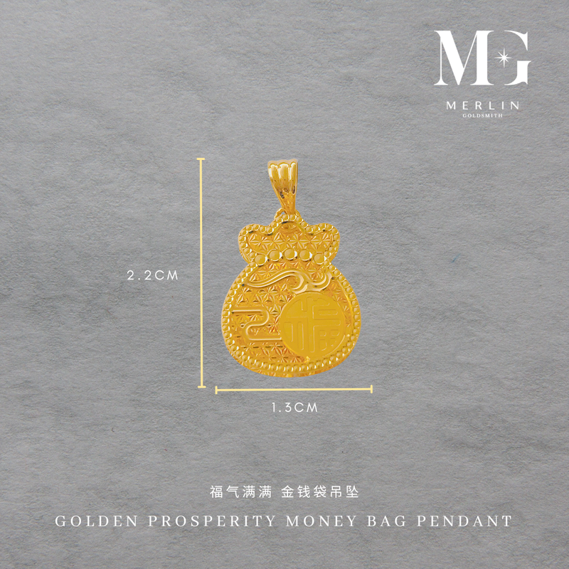 916 Gold Golden Prosperity Money Bag Pendant