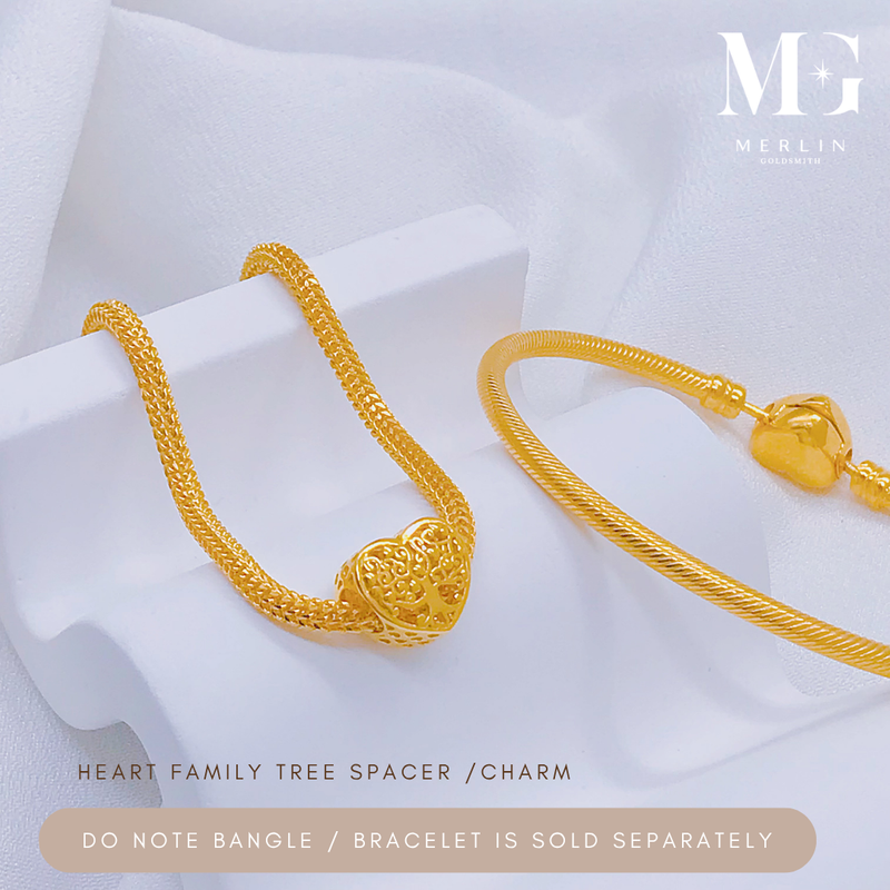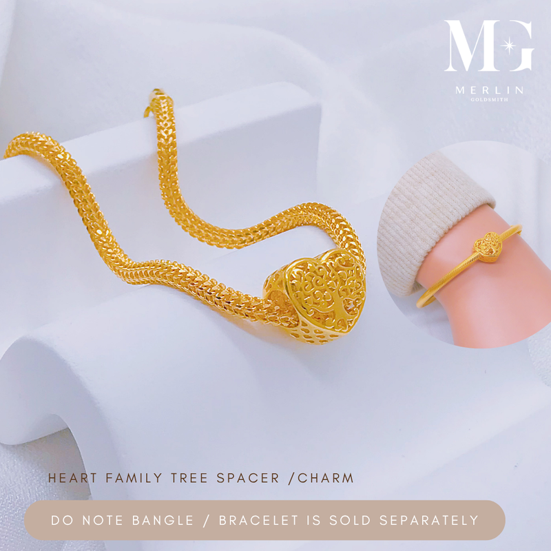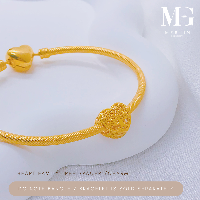 916 Gold Heart Family Tree Spacer / Charm