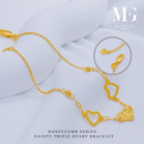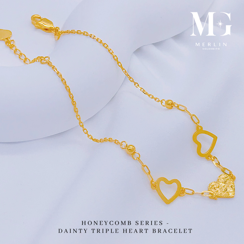 Part of our popular Honeycomb series, this 916 gold bracelet features three interconnected heart shapes. The design is light, comfortable, and symbolizes love and unity.