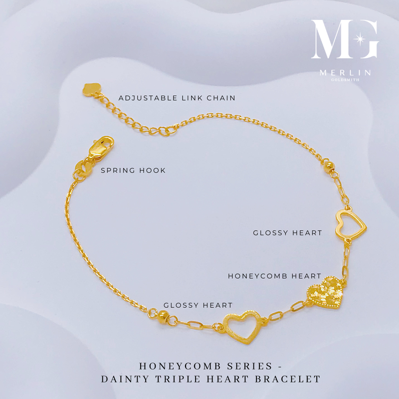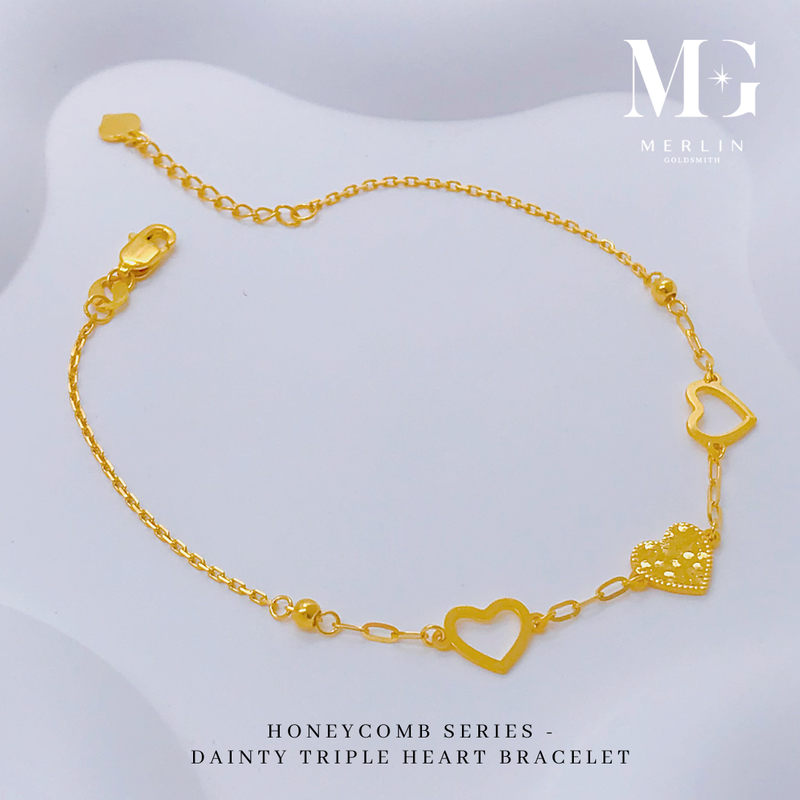 916 Gold Honeycomb Series - Dainty Triple Heart Bracelet