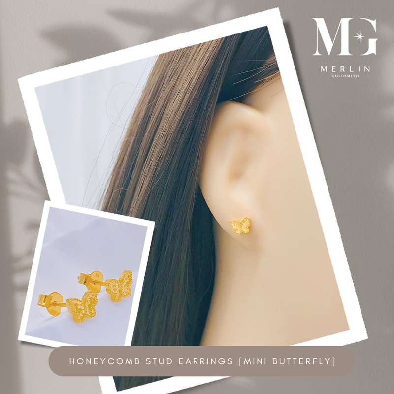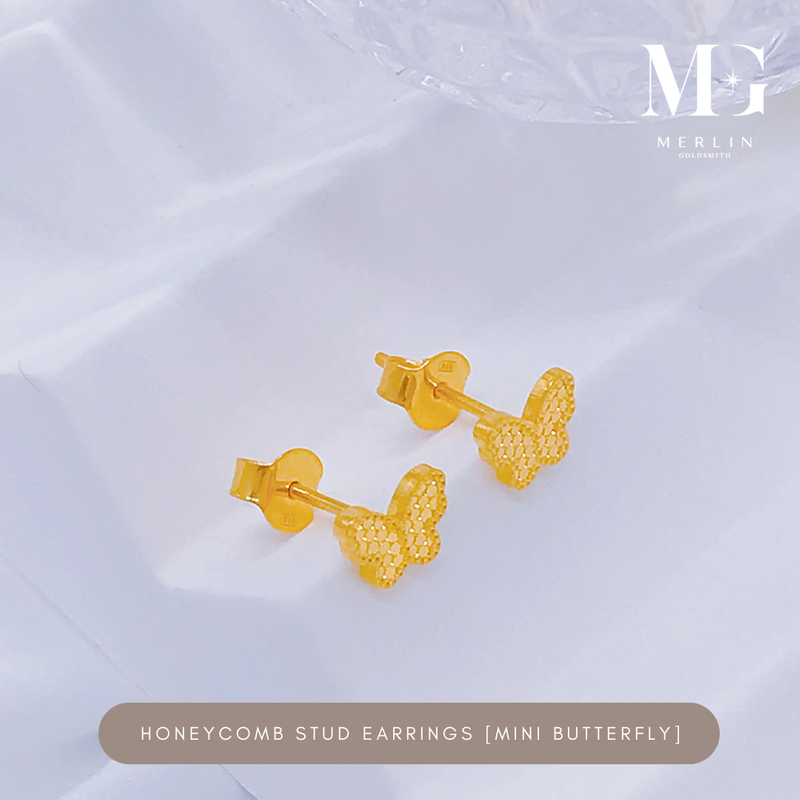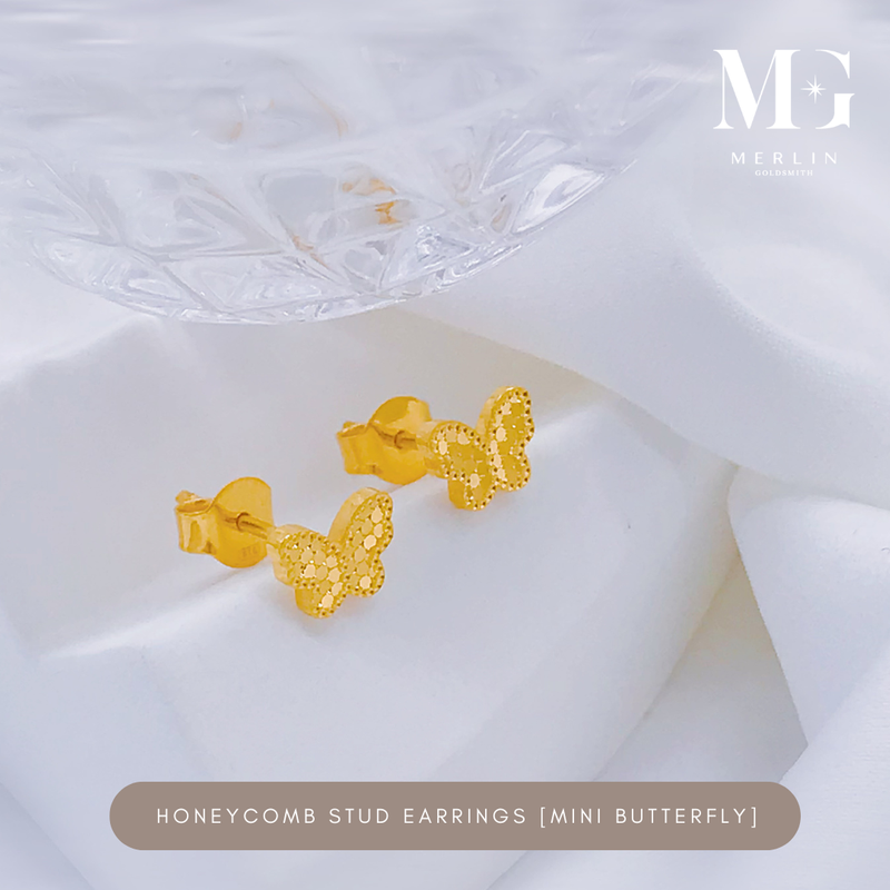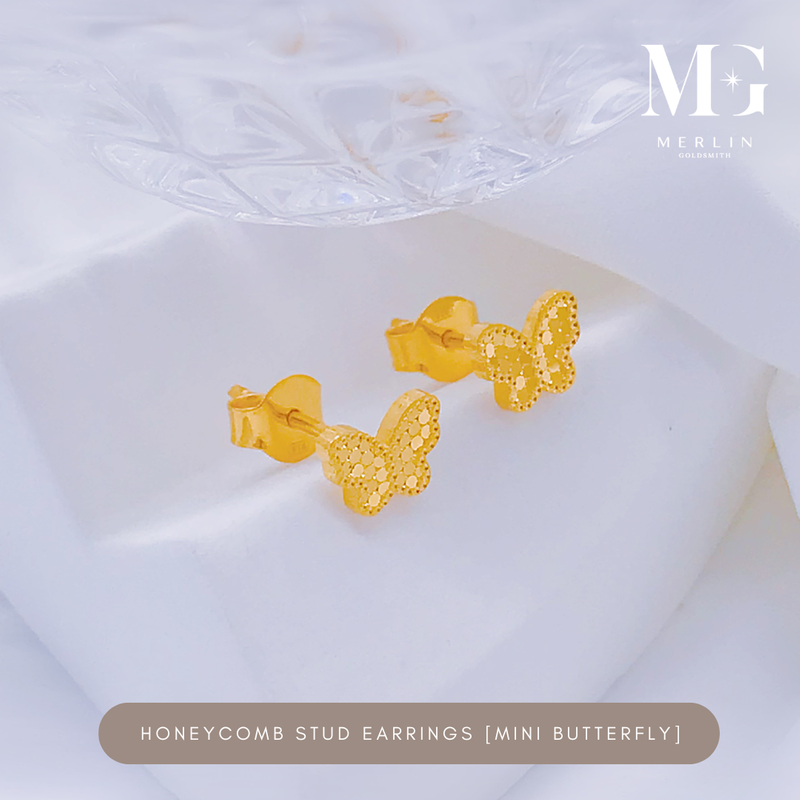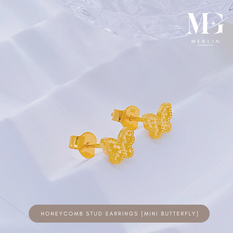 916 Gold Honeycomb Stud Earrings (Mini Butterfly)