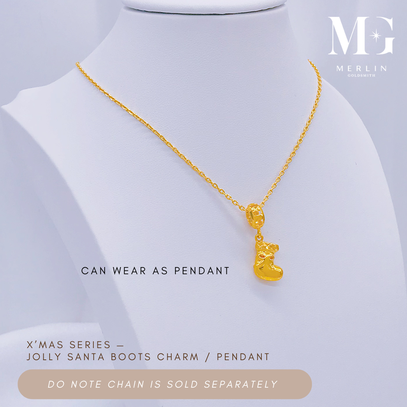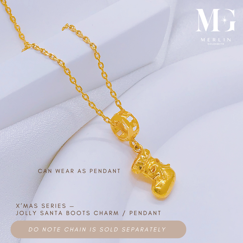 A tiny Santa boot crafted in radiant 916 gold, complete with intricate miniature details - the perfect festive touch for your charm bracelet.
