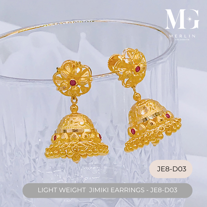 916 Gold Light Weight Jimiki Earrings - JE8-D03