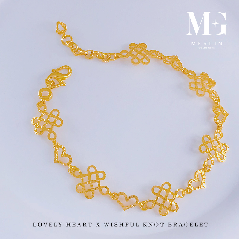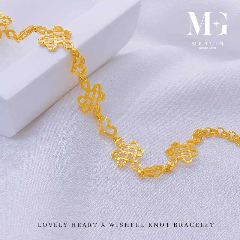 916 Gold Lovely Heart x Wishful Knot Bracelet