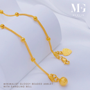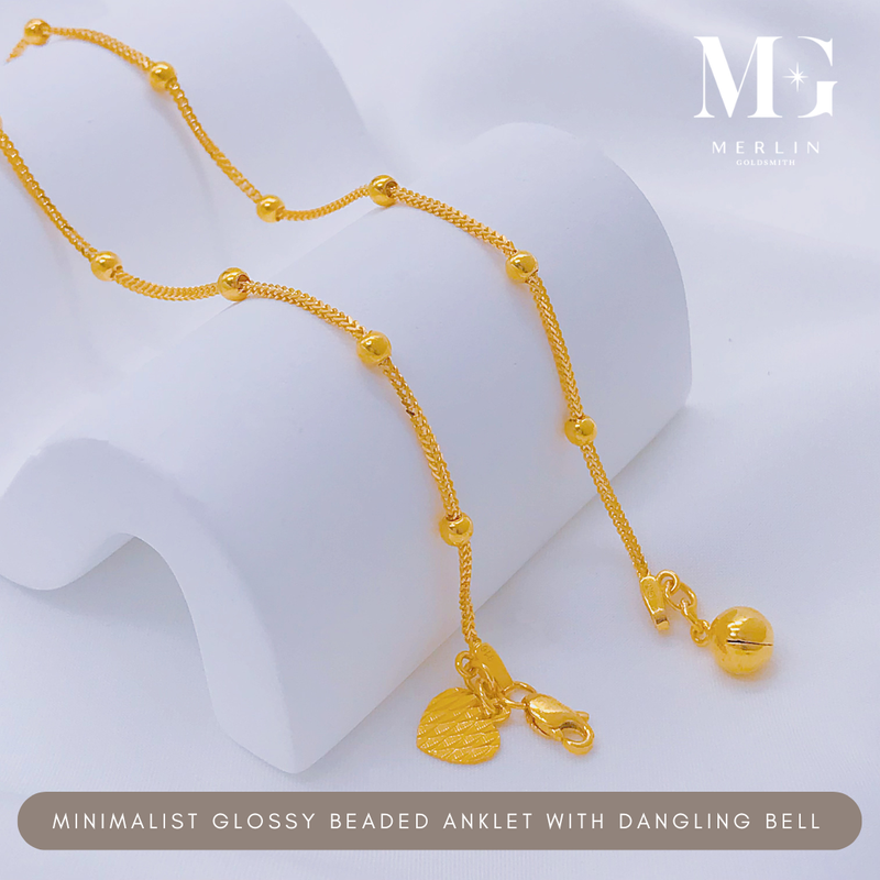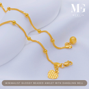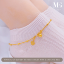 916 Gold Minimalist Glossy Beaded Anklet with Dangling Bell