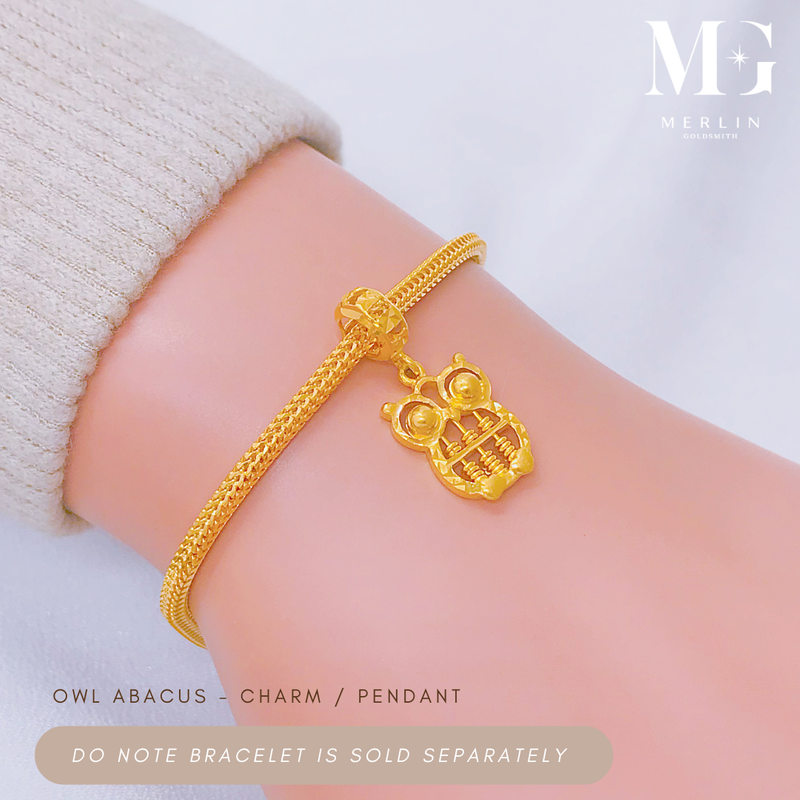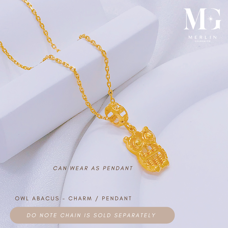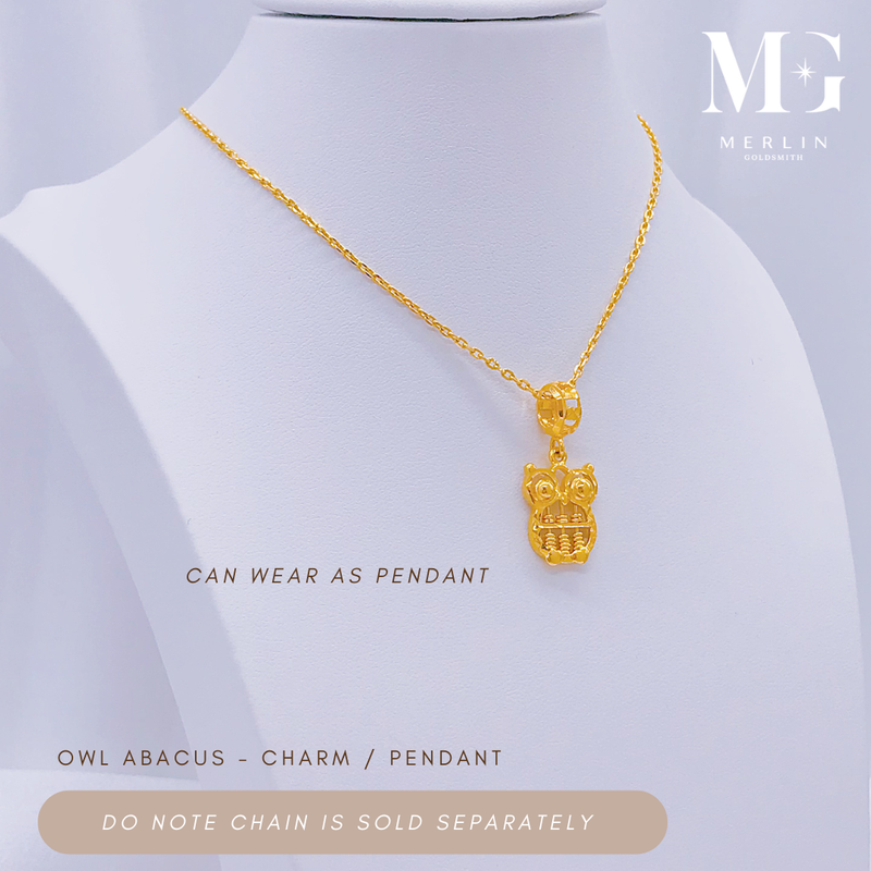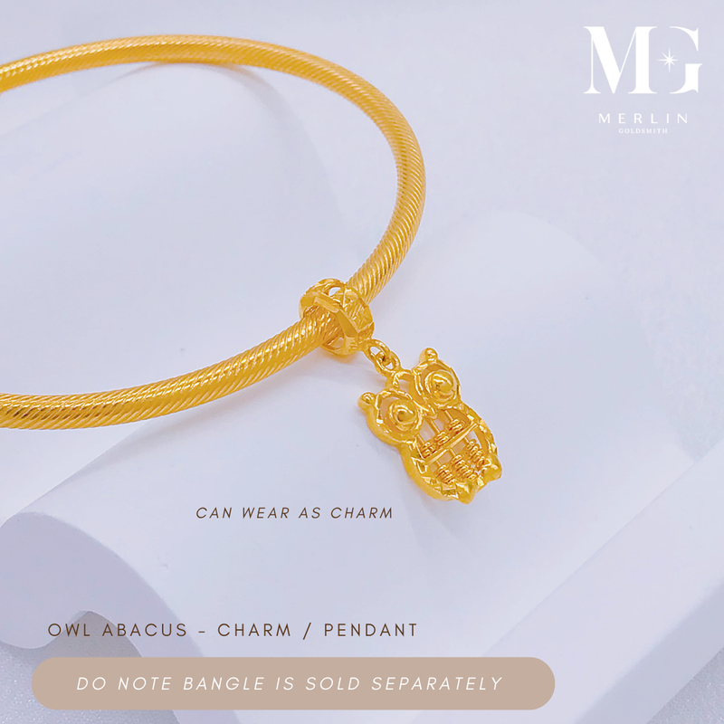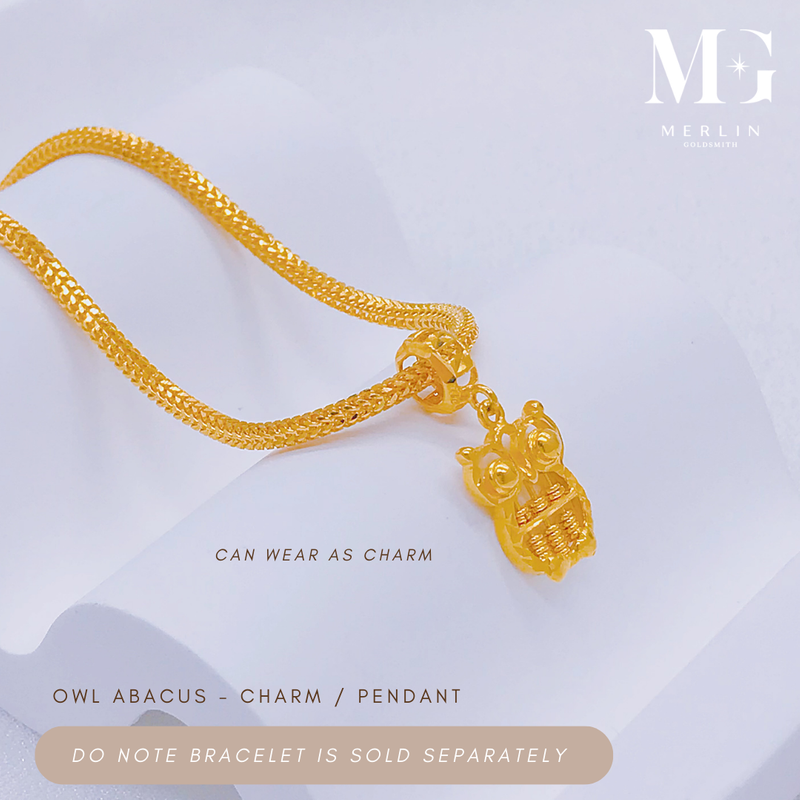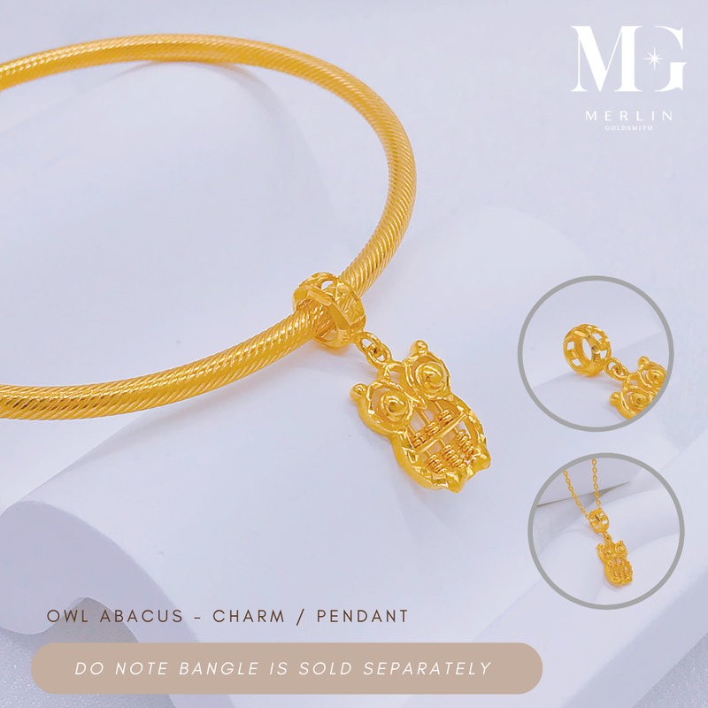 This intricate 916 gold owl design is also a functional piece, featuring movable abacus beads. Symbolizing wisdom and prosperity, it makes a meaningful and interactive accessory.