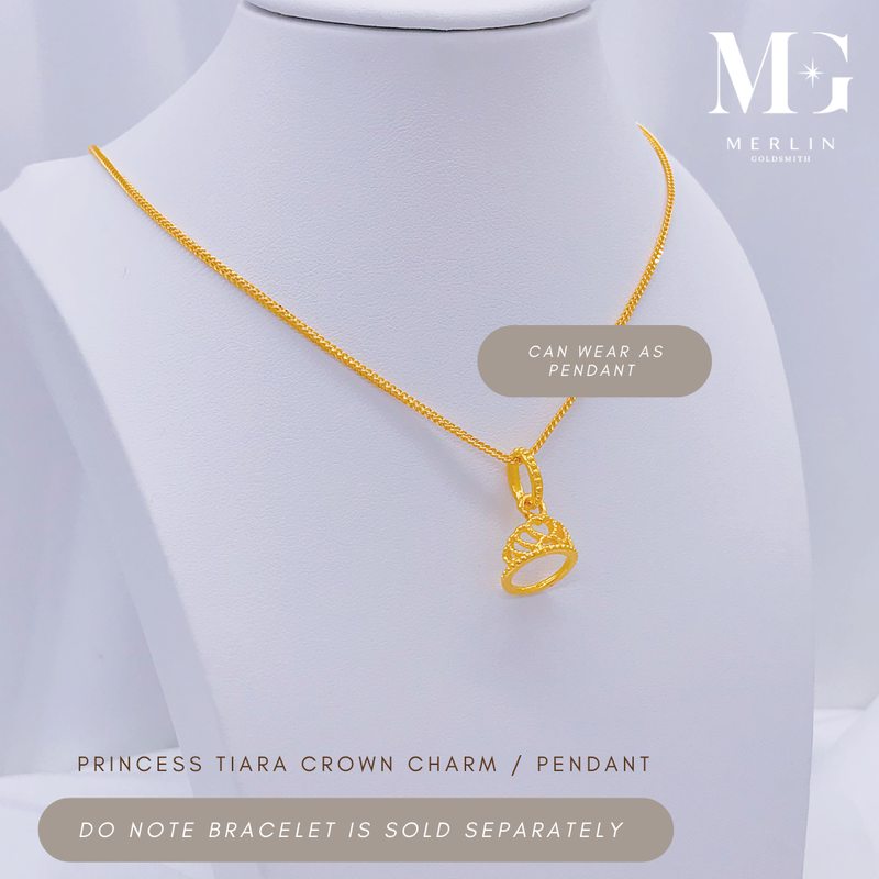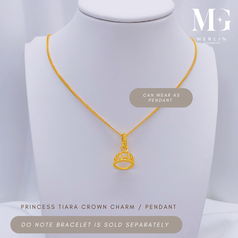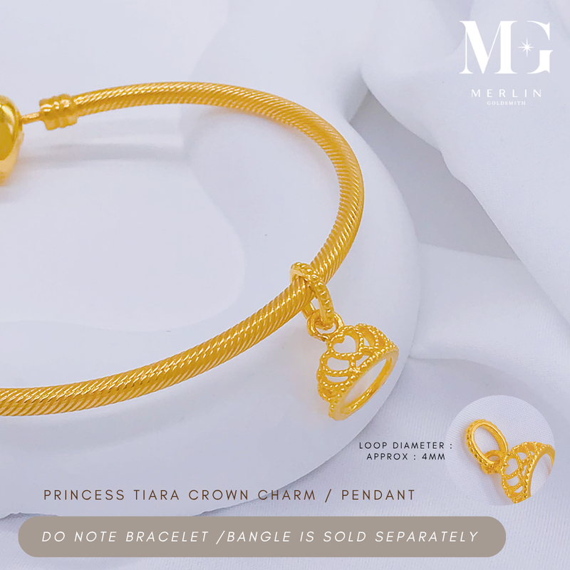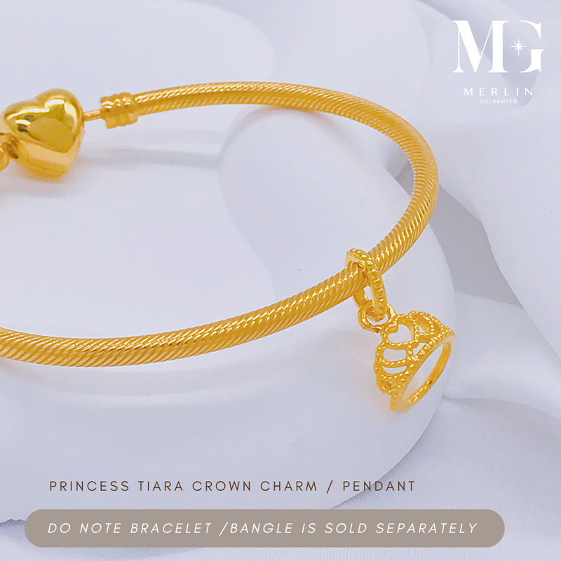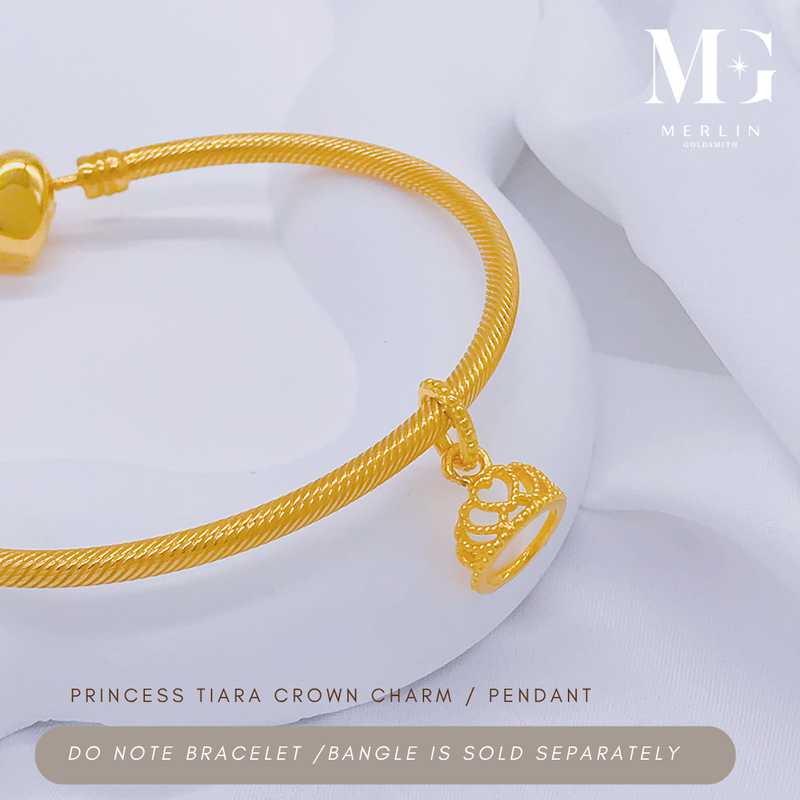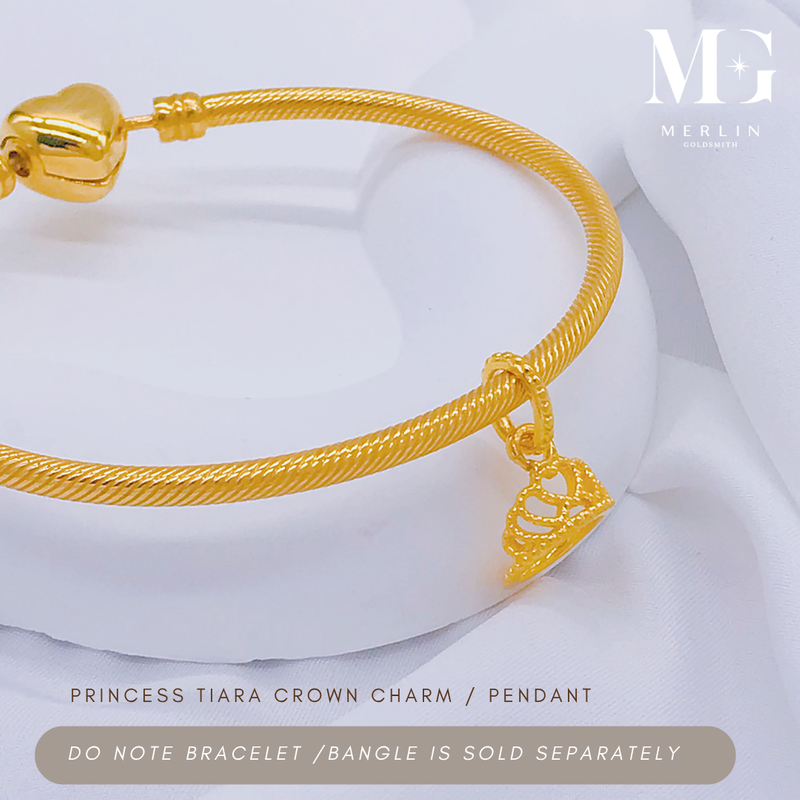 Fit for a modern princess - this delicate tiara charm in 916 gold shines with regal allure. Elegant and versatile as both pendant or bracelet charm.