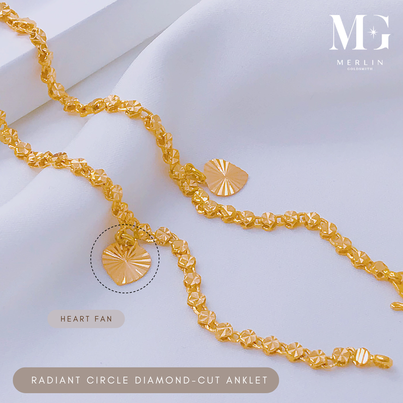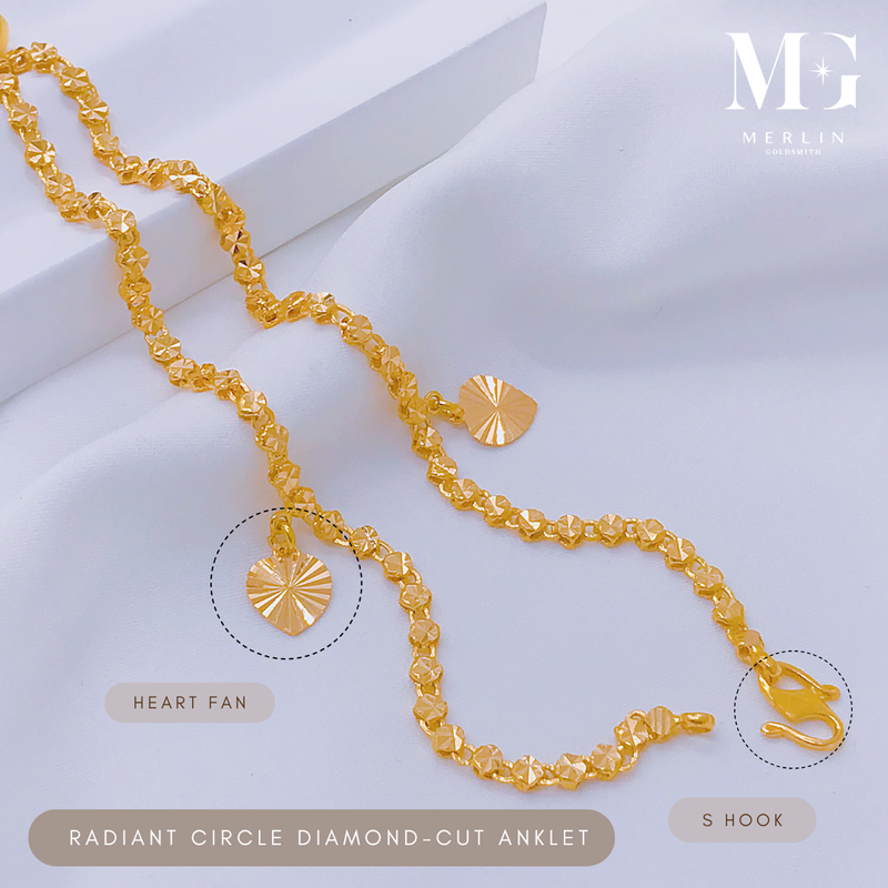 A radiant 916 gold anklet crafted with dainty circle diamond-cut links for extra sparkle. Elegant and versatile for both casual and dressy days.