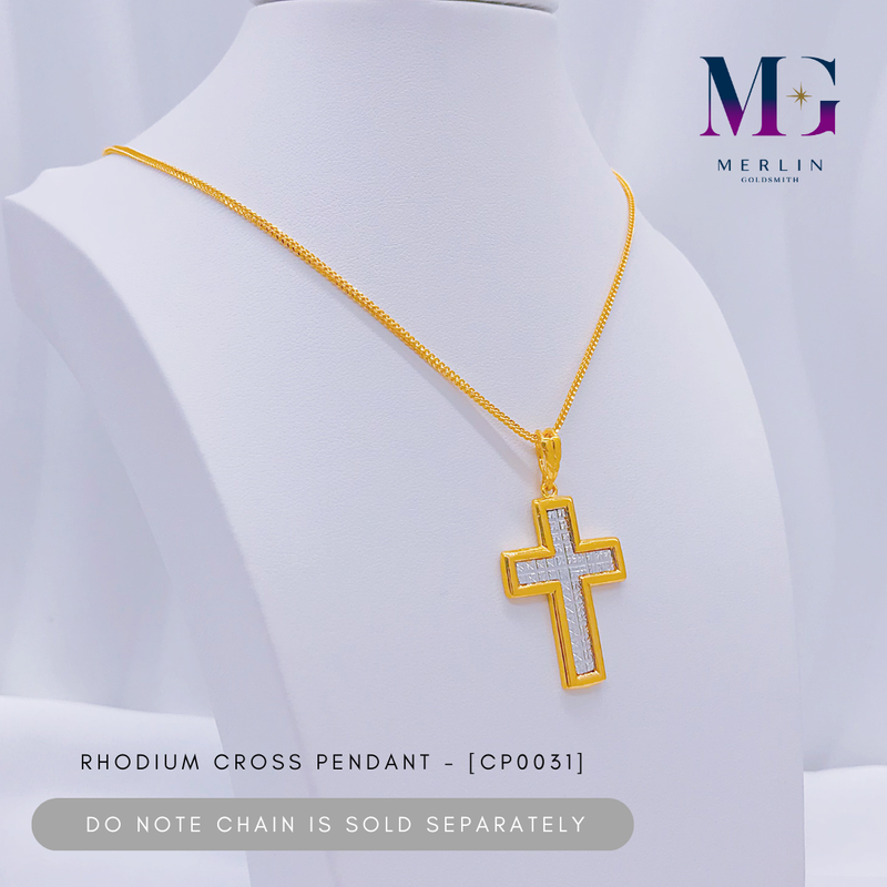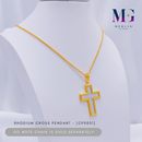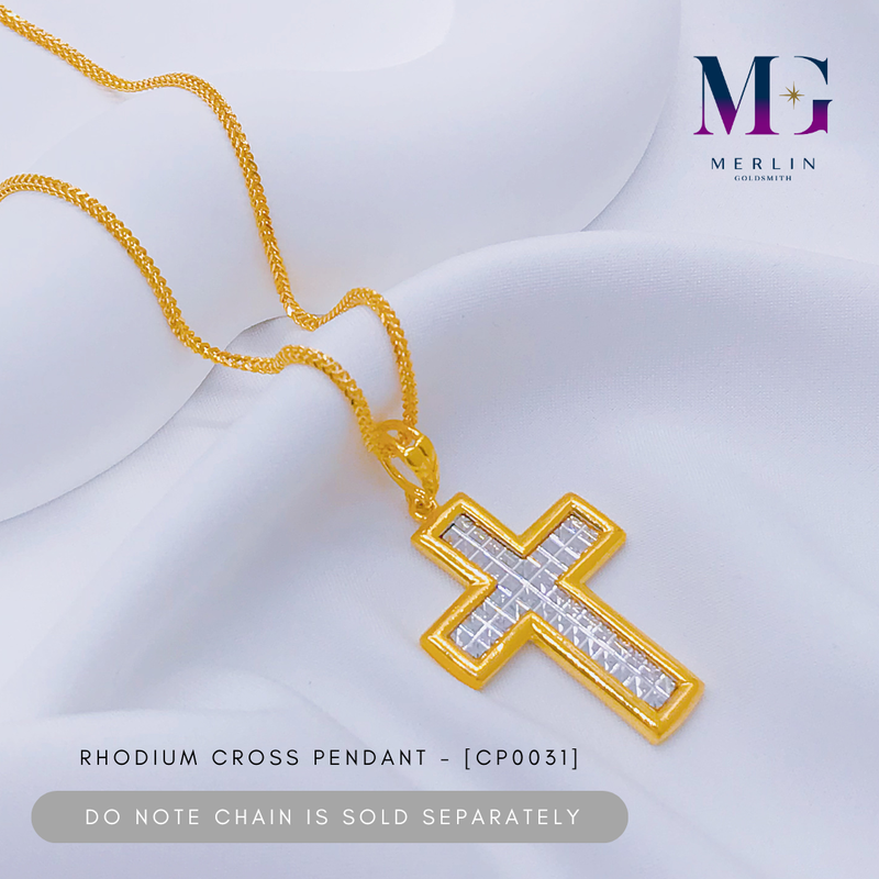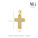 This statement 916 gold cross pendant features sparkling rhodium-plated accents that catch the light beautifully. The timeless design makes it suitable for daily wear or special occasions.