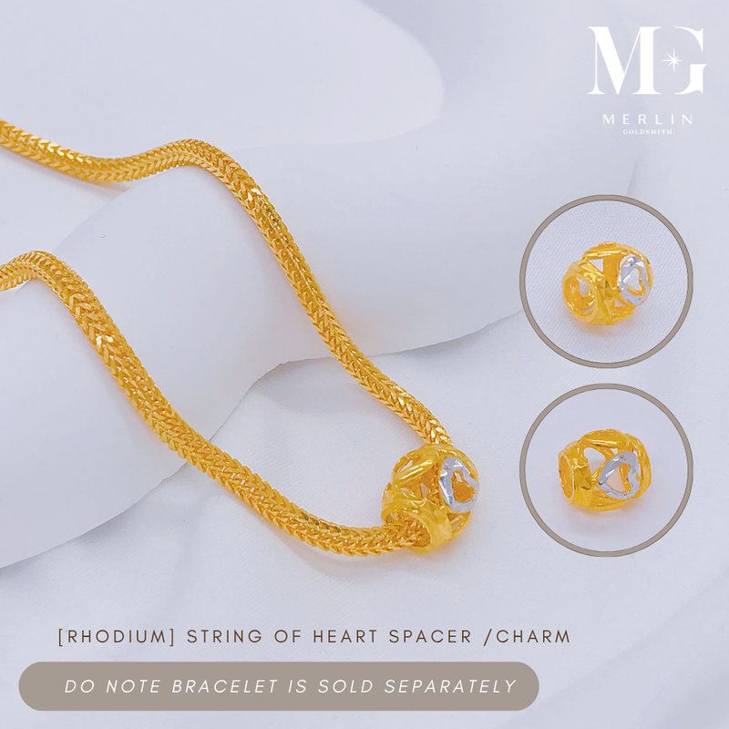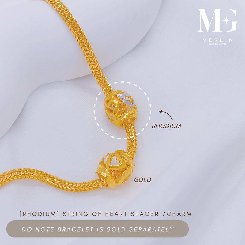 916 Gold (Rhodium) String of Heart Spacer / Charm