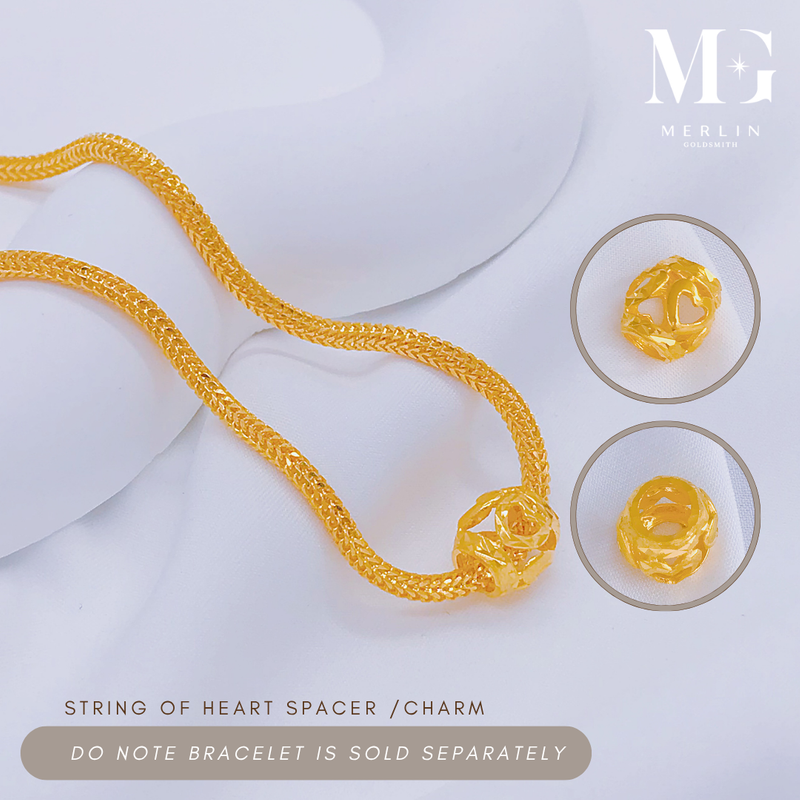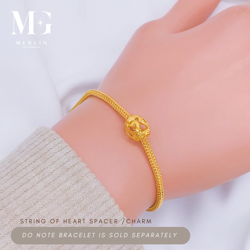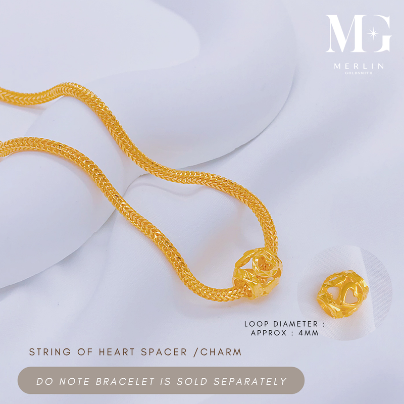 A delicate design of interlinked hearts symbolising love and unity. This 916 gold spacer adds a romantic touch to your bracelet stack.