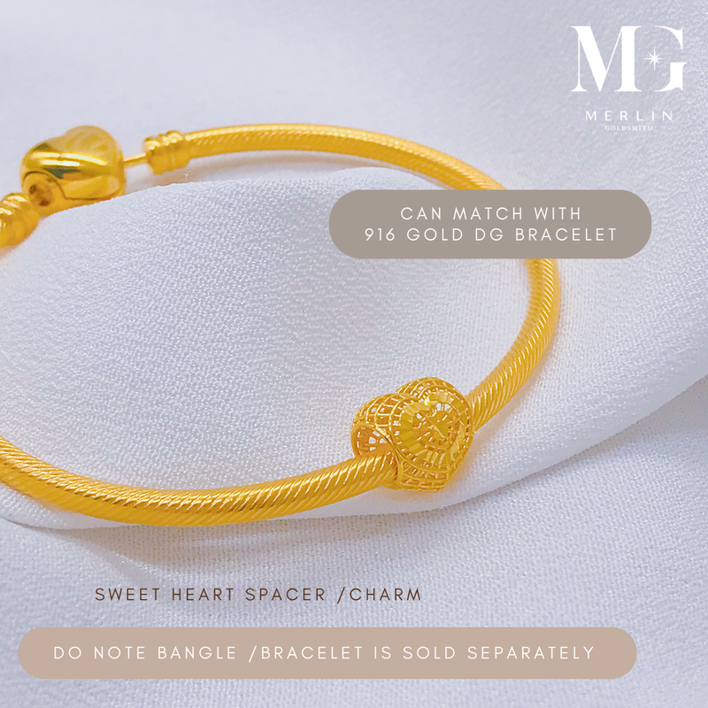 This delicate 916 22K gold sweet heart spacer features an intricate cobweb-inspired design in a sleek spacer form, perfect for adding charm and detail to your jewellery. Versatile as a charm or spacer, it’s an elegant addition to any collection.