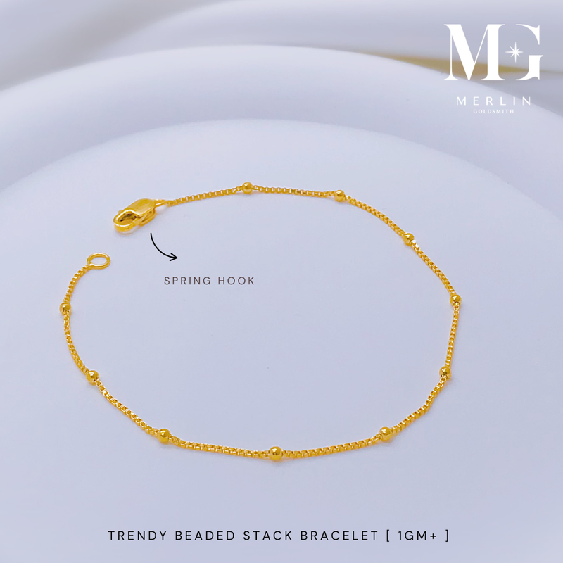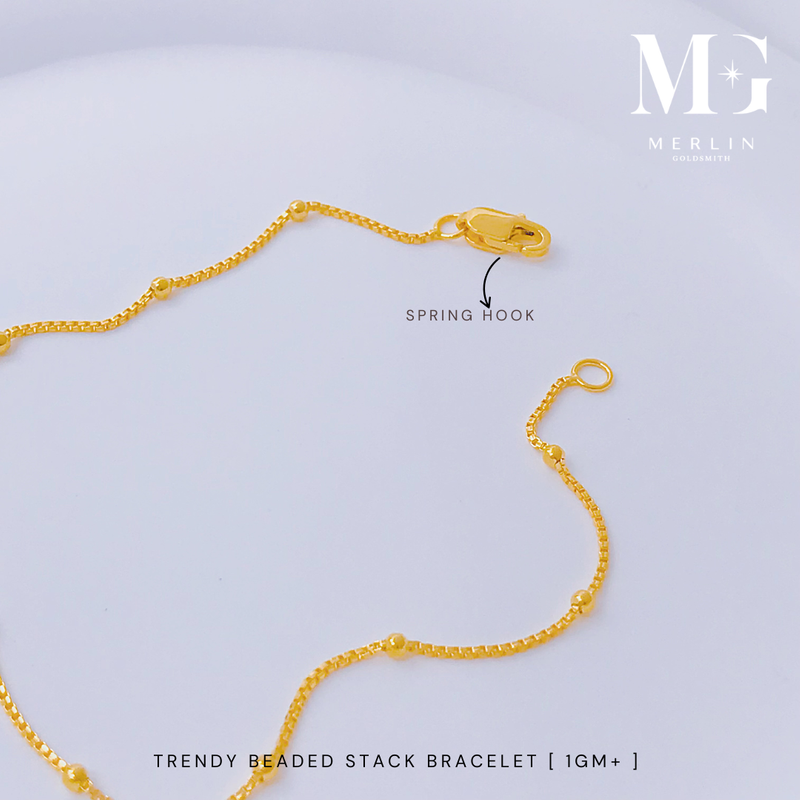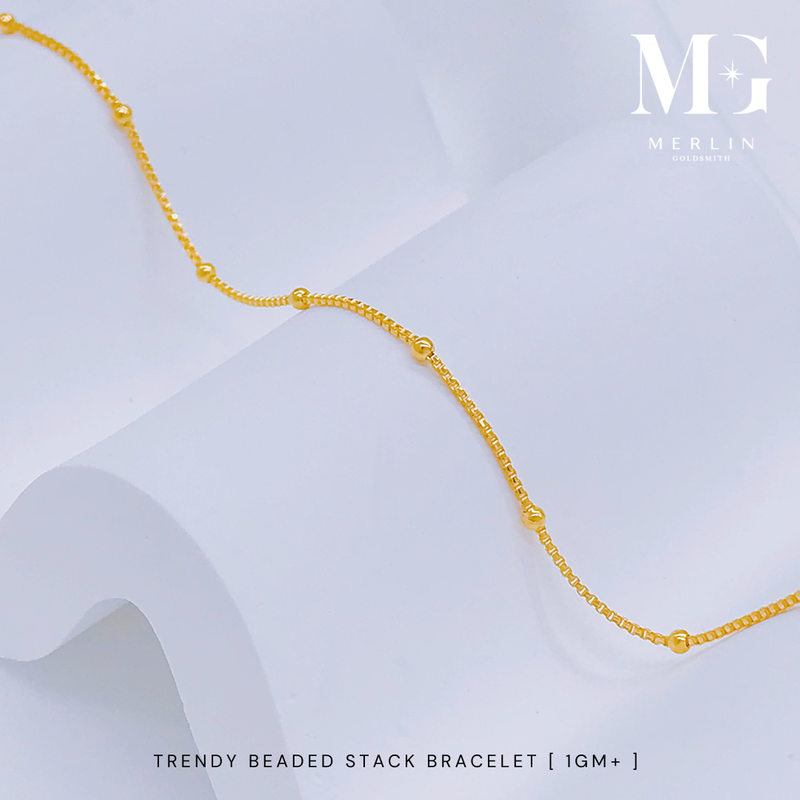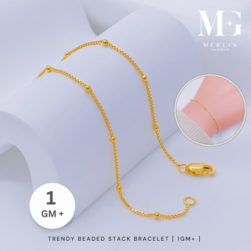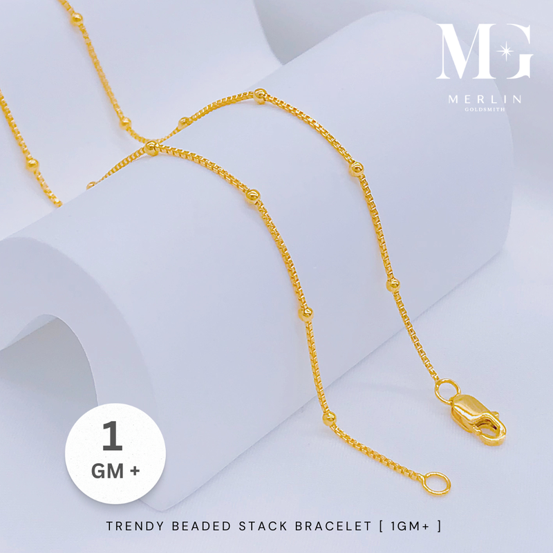 Achieve the perfect stack with the Trendy Beaded Stack Bracelet, a lightweight essential crafted in 916 Gold. Its minimalist beaded design offers versatile elegance, making it the ideal everyday gold bracelet to mix, match, and layer.