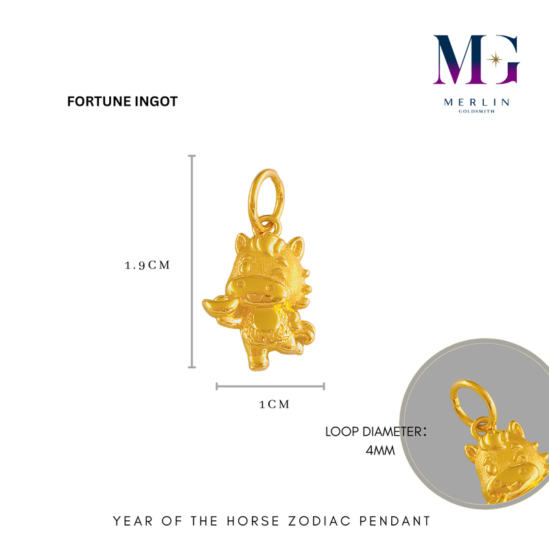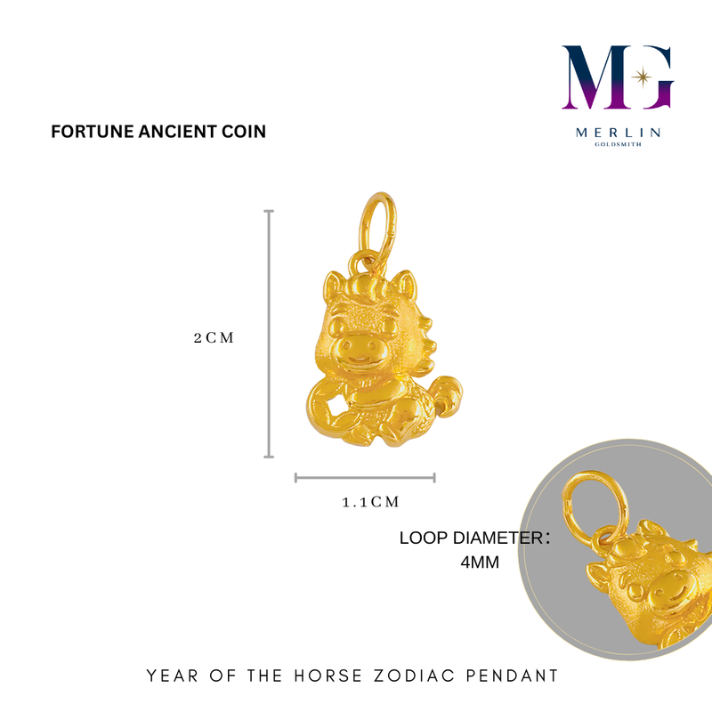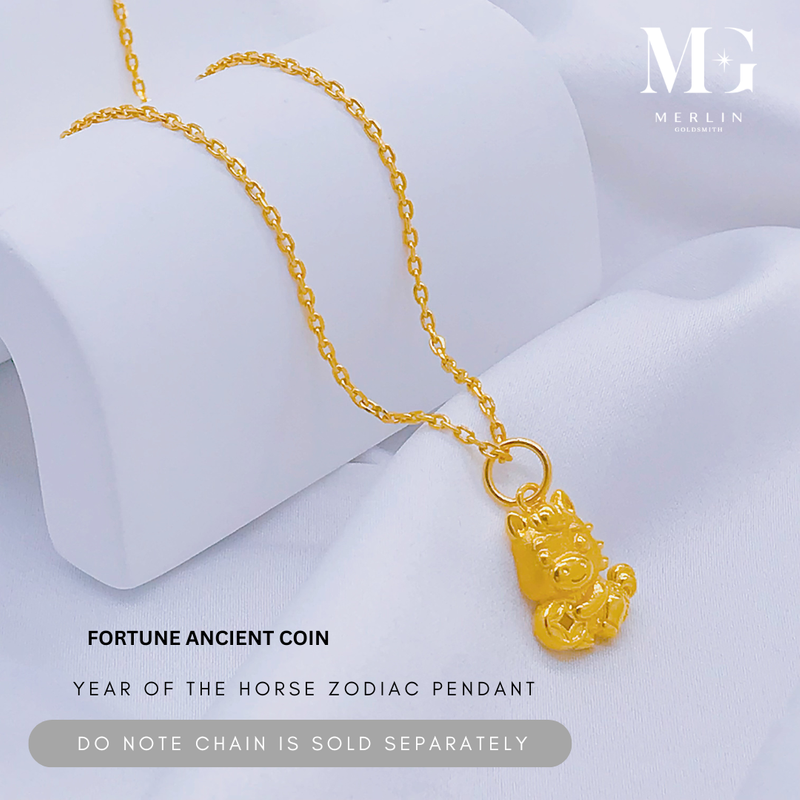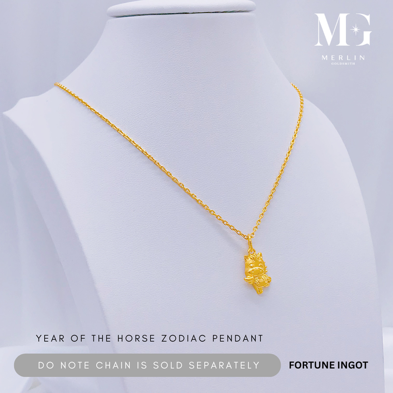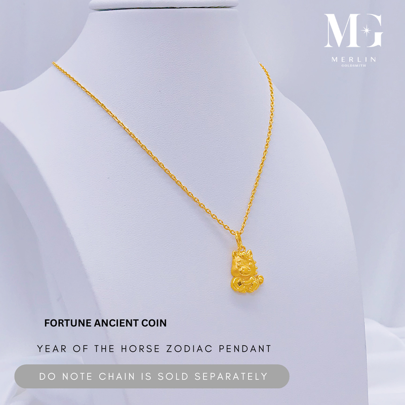 916 Gold Year of Horse Zodiac Pendant - Fortune Ingot / Fortune Ancient Coin