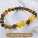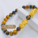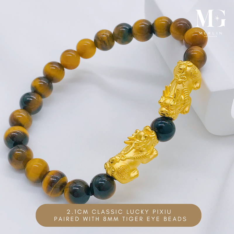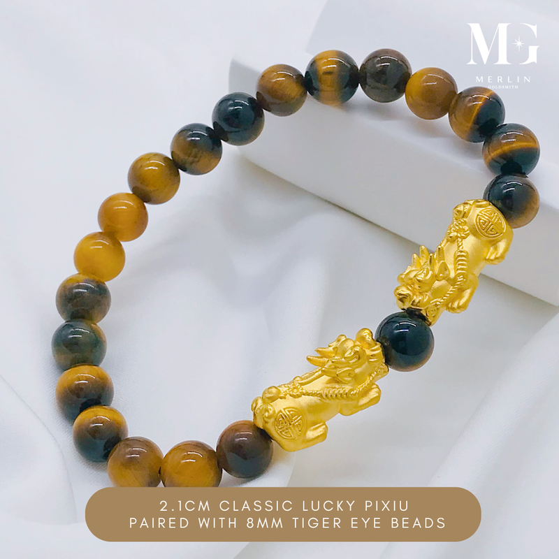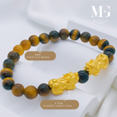 999 Pure Gold 2.1cm Classic Lucky Pixiu Paired With 8mm Tiger Eye Beads Bracelet