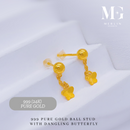 999 Pure Gold Ball Stud with Dangling Butterfly Earrings